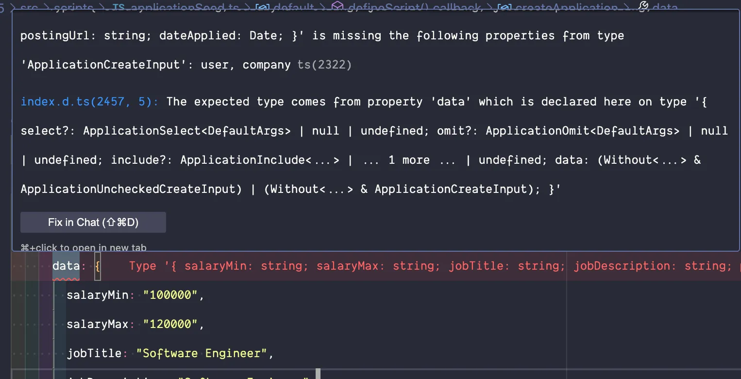 Earlier, I mentioned that sometimes I’ll create multiple seed files with various purposes.. This is a perfect opportunity to create a separate file just for adding job applications to our database.